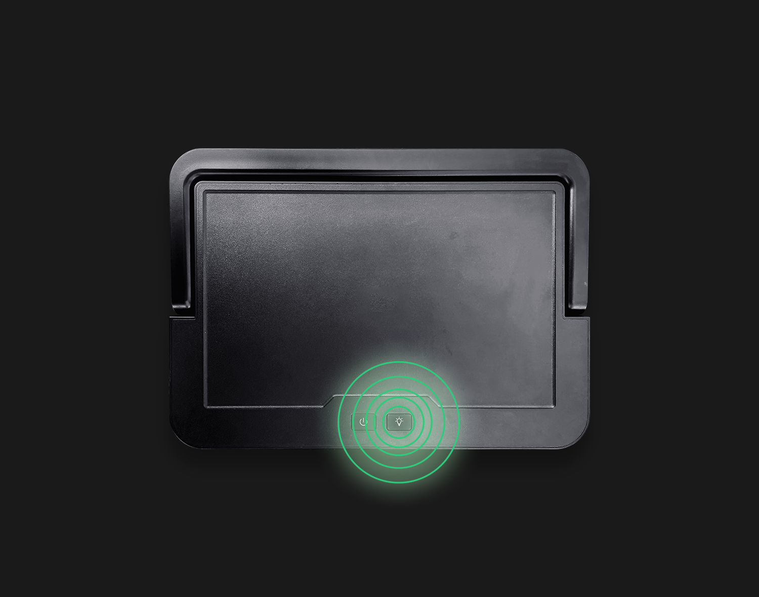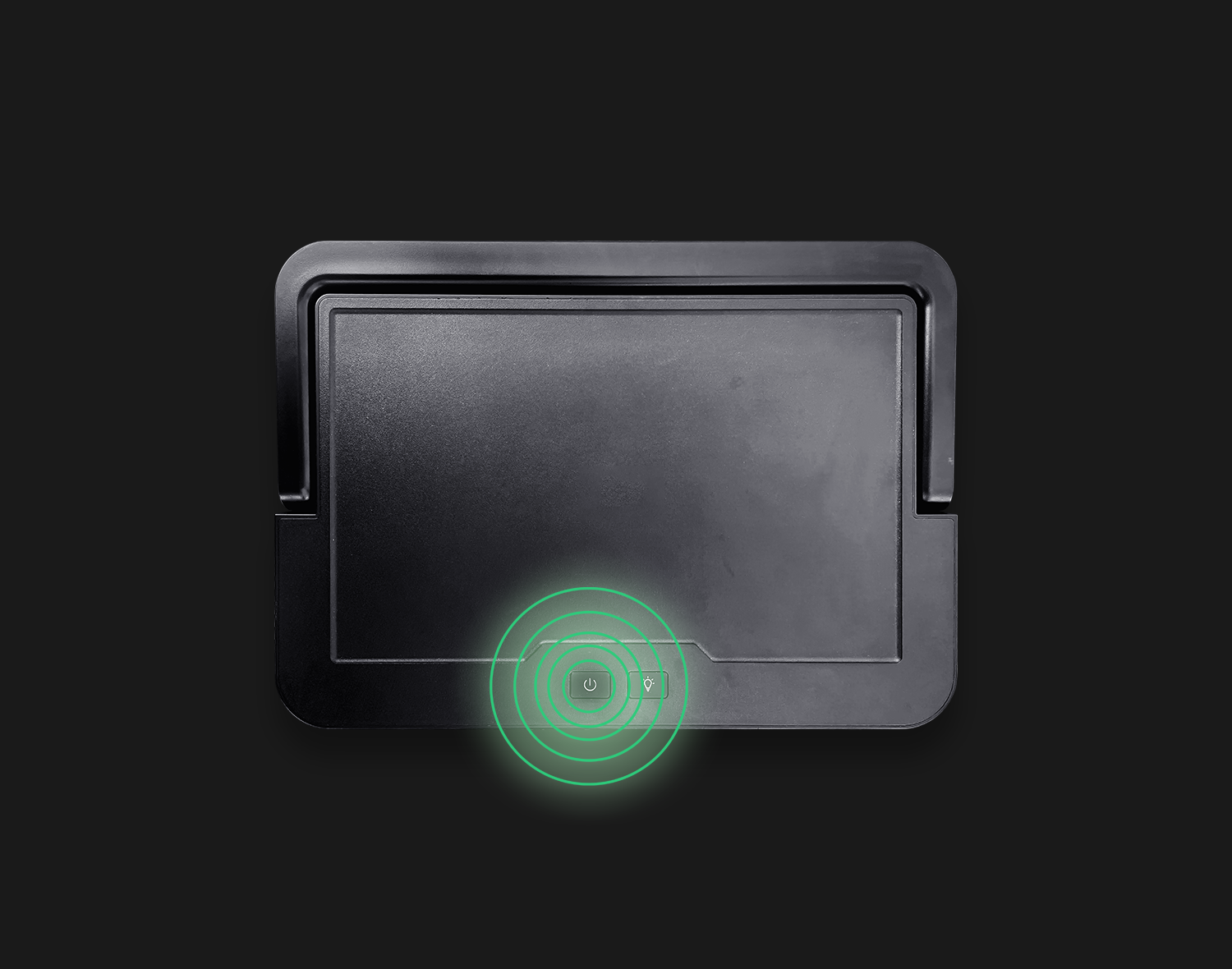 Locate the power button on the top of the unit. Press and hold the power button for 3 seconds to power on.