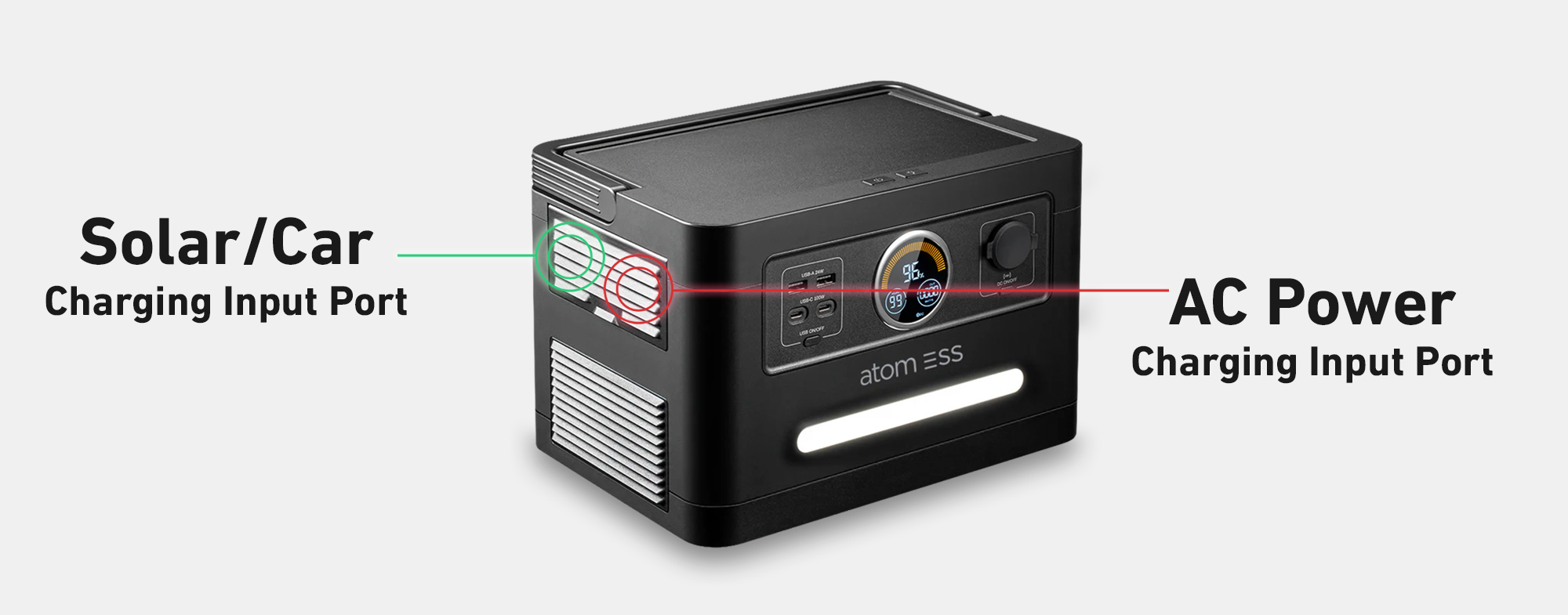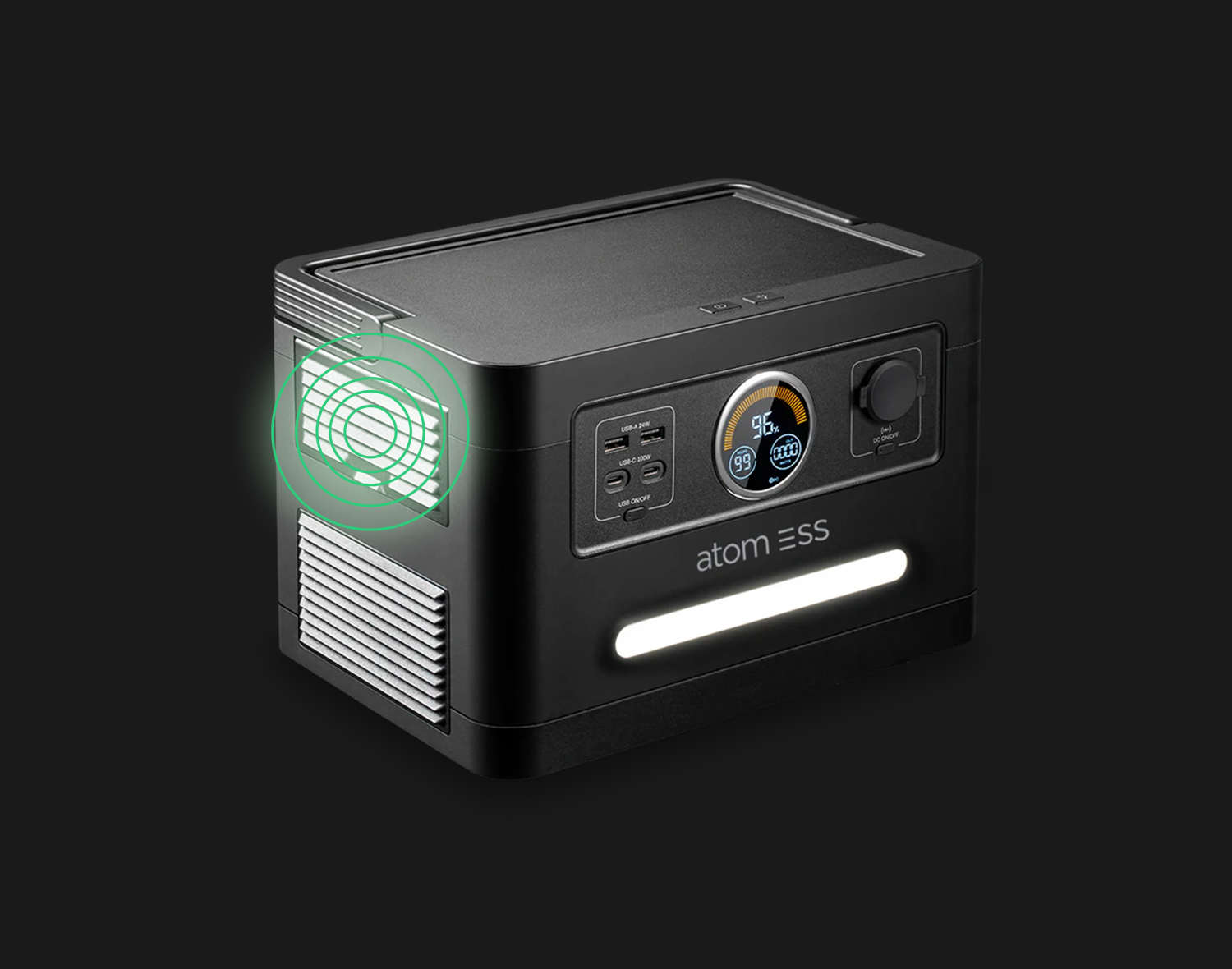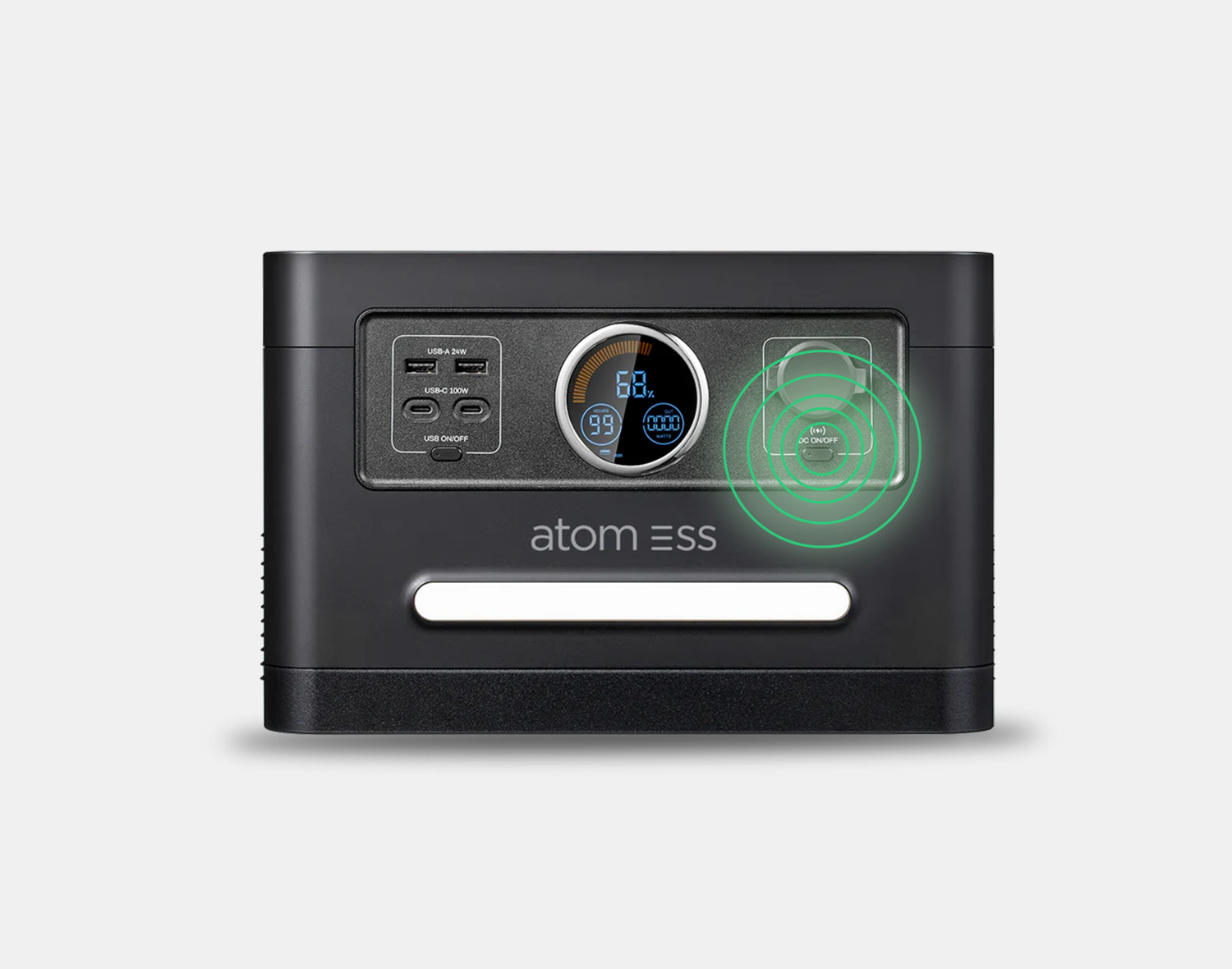 Locate the AC button, under the output flap on the side of the unit. Short press the AC button to initiate AC output.
