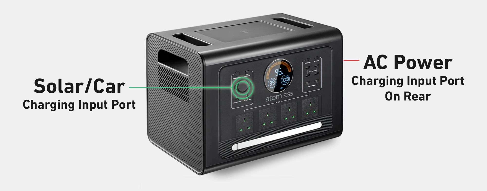 Locate the AC button, on the front upper right of the unit. Short press the AC button to initiate AC output.